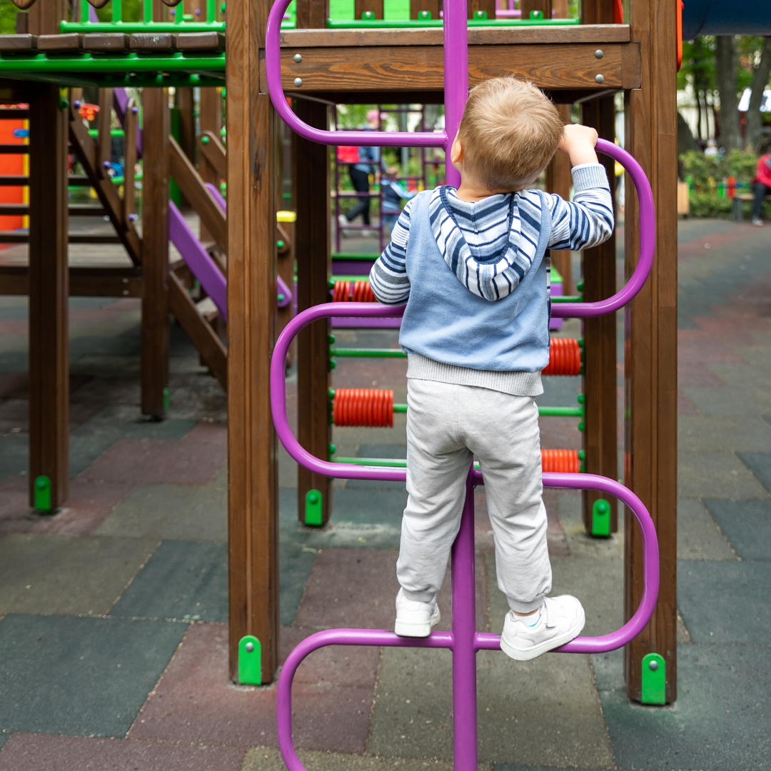 Encourage your child to talk while they play and move. For example, they can say, “I’m climbing up!" “Slide fast!" to connect actions with words.